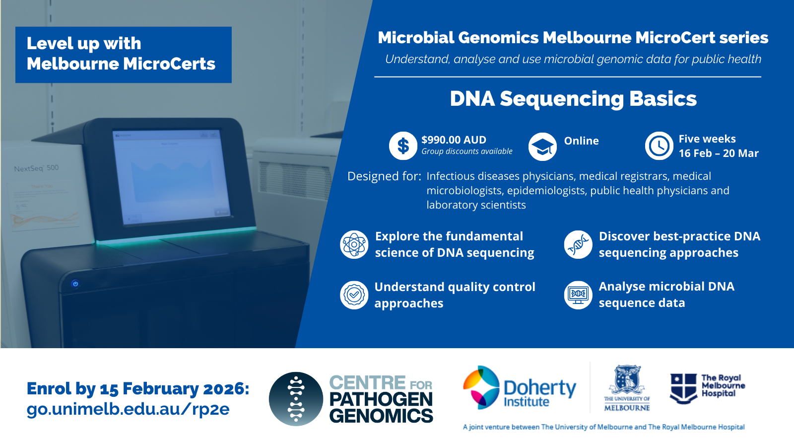 16th Feb - 20th Mar - Microbial Genomics Melbourne MicroCert series: DNA Sequencing Basis